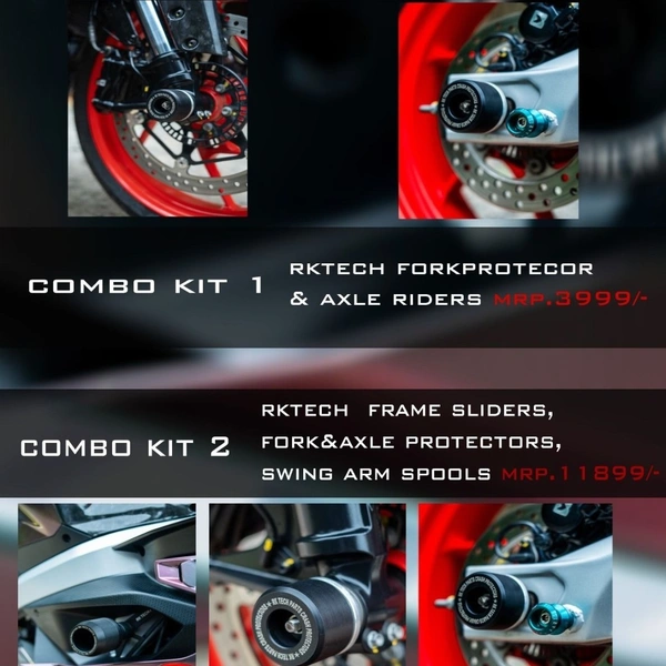 “Enhance your bike’s protection with the RK Tech Front Fork Protector and RK Tech Rear Axle Protector Combo Kit 1.”